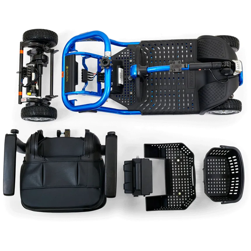Experience freedom and independence with the Golden Technologies LiteRider 4-Wheel mobility scooter, the perfect travel companion for active seniors and individuals seeking reliable, portable mobility solutions. This lightweight travel scooter combines exceptional stability, comfort, and convenience in a compact design that easily disassembles for transport.