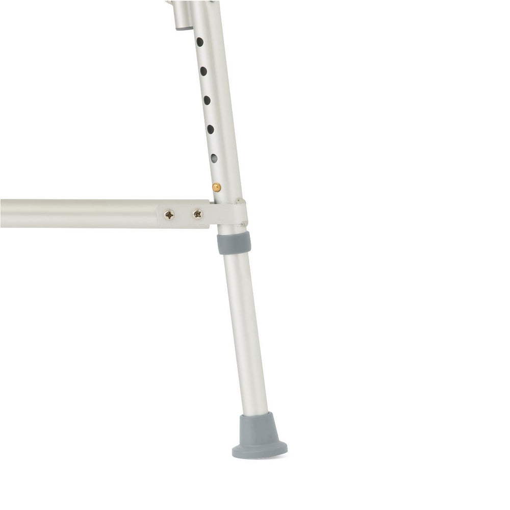 The height-adjustable leg system allows caregivers and users to customize the seat height from 16.5 inches to 20.5 inches, making it easy to tailor the chair to individual user needs, bathroom configurations, and transfer requirements. This versatile adjustment range ensures optimal positioning for safe transfers from wheelchairs, walkers, or standing positions, while also accommodating various bathtub and shower floor heights. Each leg features a simple push-button adjustment mechanism that locks securely into place, providing reliable stability once the desired height is achieved.