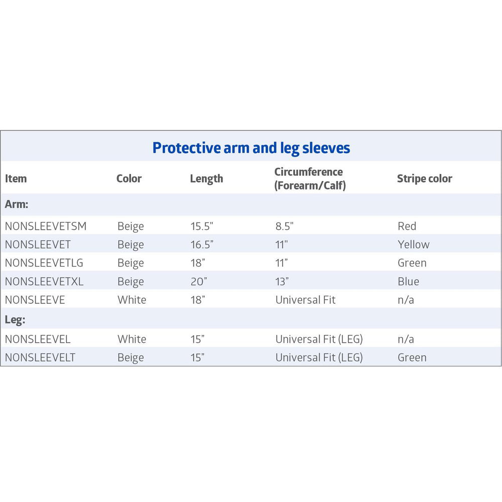 Available in five carefully calibrated sizes to accommodate all users: Universal (18" length, White), Small (16.5" length, 11" circumference, Beige), Medium (18" length, 11" circumference, Beige), Large (15.5" length, 8.5" circumference, Beige), and Extra Large (20" length, 13" circumference, Beige). Each size features distinctive color-coded bands for effortless identification.
