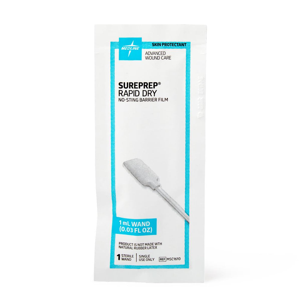 Medline SurePrep Rapid Dry No-Sting Barrier Film Wand delivers advanced dermal protection against adhesive trauma, moisture-associated skin damage, and bodily fluid exposure. Engineered for topical application across all body sites, this alcohol-free barrier film creates a transparent, breathable protective layer that shields both intact and compromised skin from the damaging effects of friction, incontinence, and repeated adhesive application.