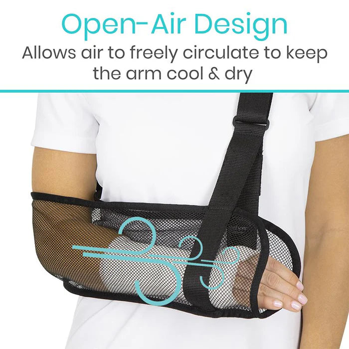 The Vive mesh arm sling is made with a soft, polyester mesh material.