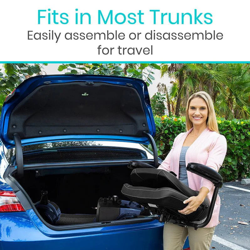 Accommodating users of all sizes, the Vive Mobility scooter safely supports up to 298 pounds and offers plenty of legroom on the sturdy, non-slip platform