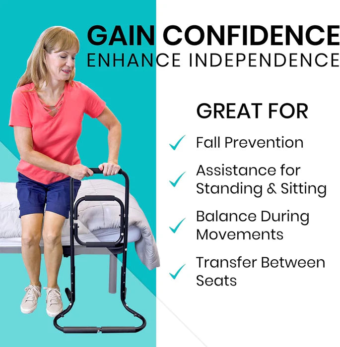 Experience unparalleled freedom with the versatile stand-alone design of this assistive aid, allowing you to use it in any room or area of your home. No installation or furniture attachments are required. Enjoy flexibility in the living room, bedroom, or bathroom, ensuring dependable assistance to reduce the risk of falls and promote independent living