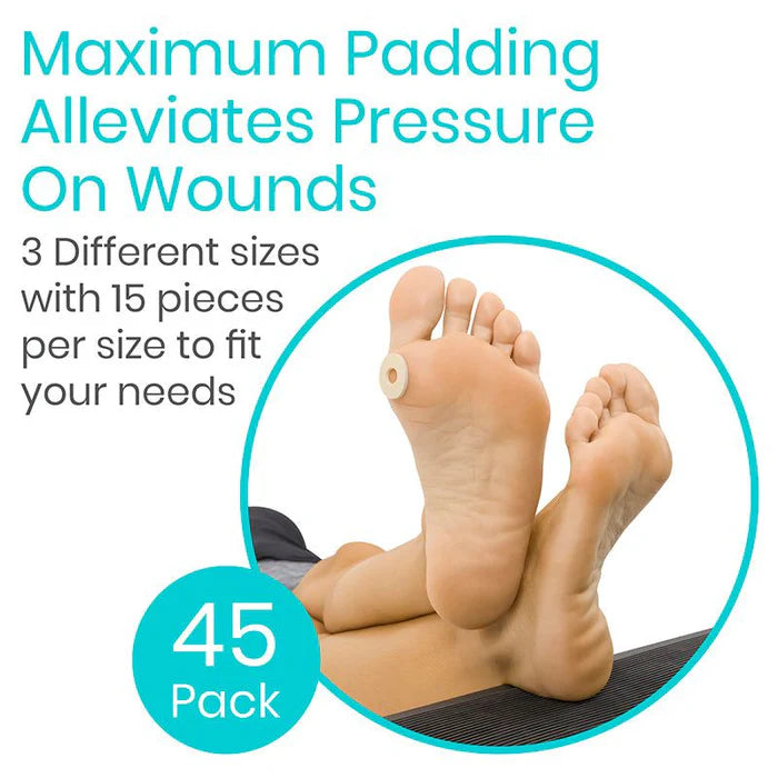 Choose from 45 pieces, including 15 small oval corn pads, 15 medium pads, and 15 large felt pads to help you find your perfect size.