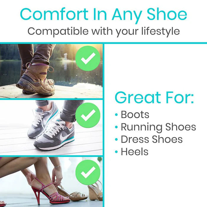 Yes! With a slim design, these cushioned pads provide comfort while also fitting comfortably inside most shoe styles.