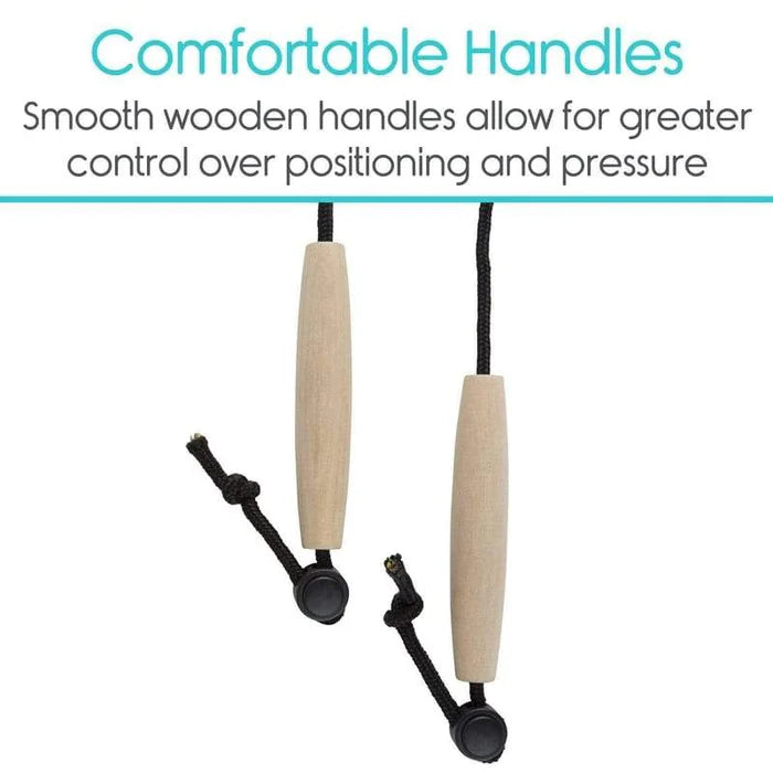 Wooden handles allow greater control over placement and pressure for optimal relief