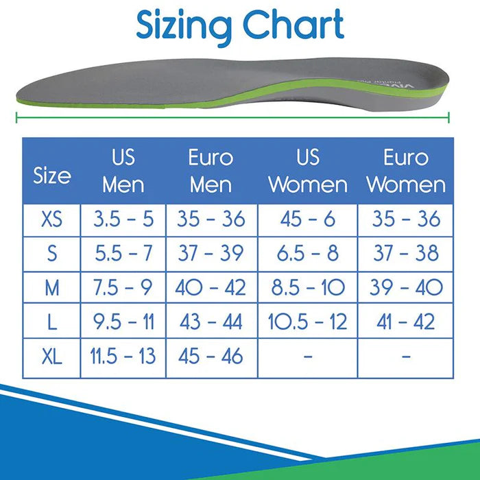 The orthotic insoles are printed with guidelines to follow in order to trim each support to fit your shoe. Use your shoe’s existing insole as a guide.