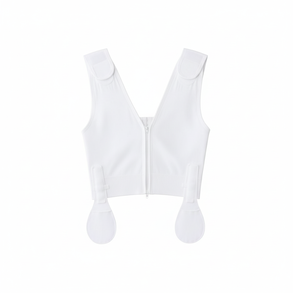 The Post-Surgical Compression Bra is expertly engineered to deliver exceptional support, comfort, and healing facilitation for individuals recovering from chest surgeries, including mastectomy, breast reconstruction, lumpectomy, reduction mammoplasty, augmentation procedures, and other post-operative interventions. This medical-grade recovery garment combines innovative design features with premium materials to create an ideal solution for post-surgical care and rehabilitation.