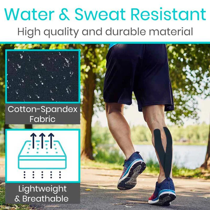 Repelling sweat and water, the therapeutic sports tape stays securely in place while swimming, outdoor events and intense indoor workout