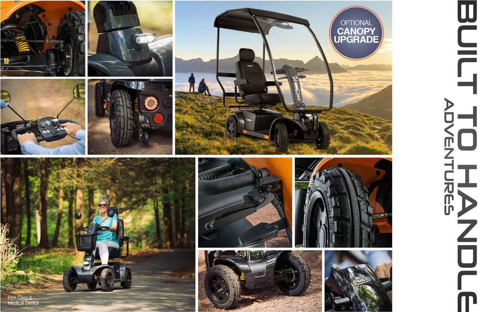 This scooter packs a punch, offering a 400-pound weight capacity and a lithium-ion battery. The Pursuit 2 also allows for easy travel to wherever you’re headed so you’ll never have to treat it with kid gloves. Plus, with durable plastic shrouds, the Pursuit 2 can handle brush, branches and mud with no problem. It’s all part of the journey.