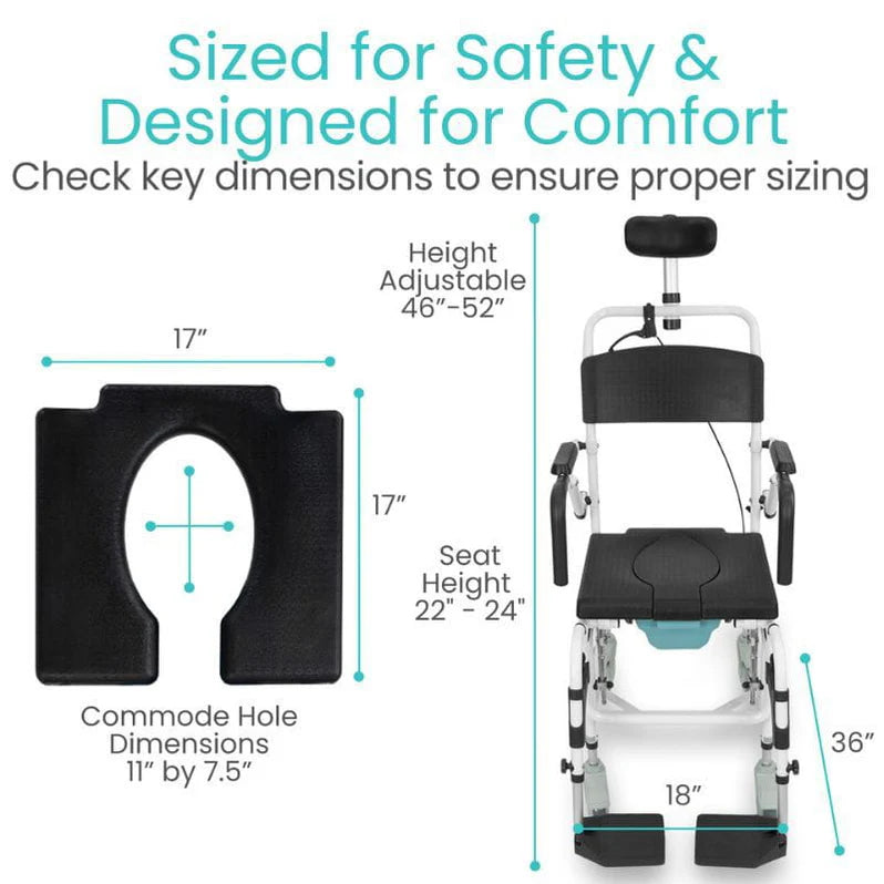 This versatile chair functions as a transport chair, a shower chair, and a commode, providing a three-in-one solution that adapts to your various daily needs.