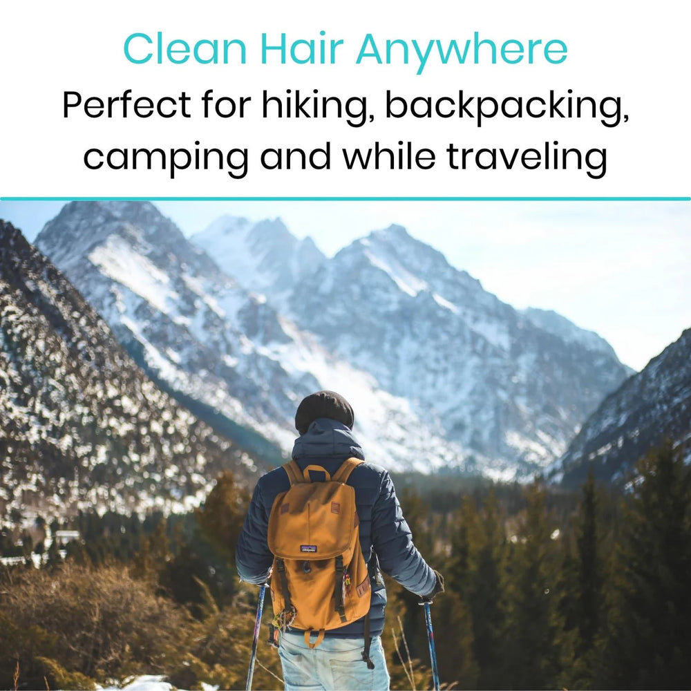 Great for travel, camping and more, the rinse-free shampoo caps are easy to use anywhere