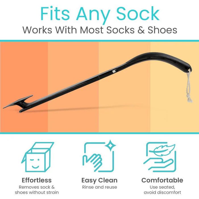 The Vive Sock Remover allows you to effortlessly remove socks, hosiery, or compression stockings without bending or twisting. Experience smooth and pain-free sock removal with this lightweight tool