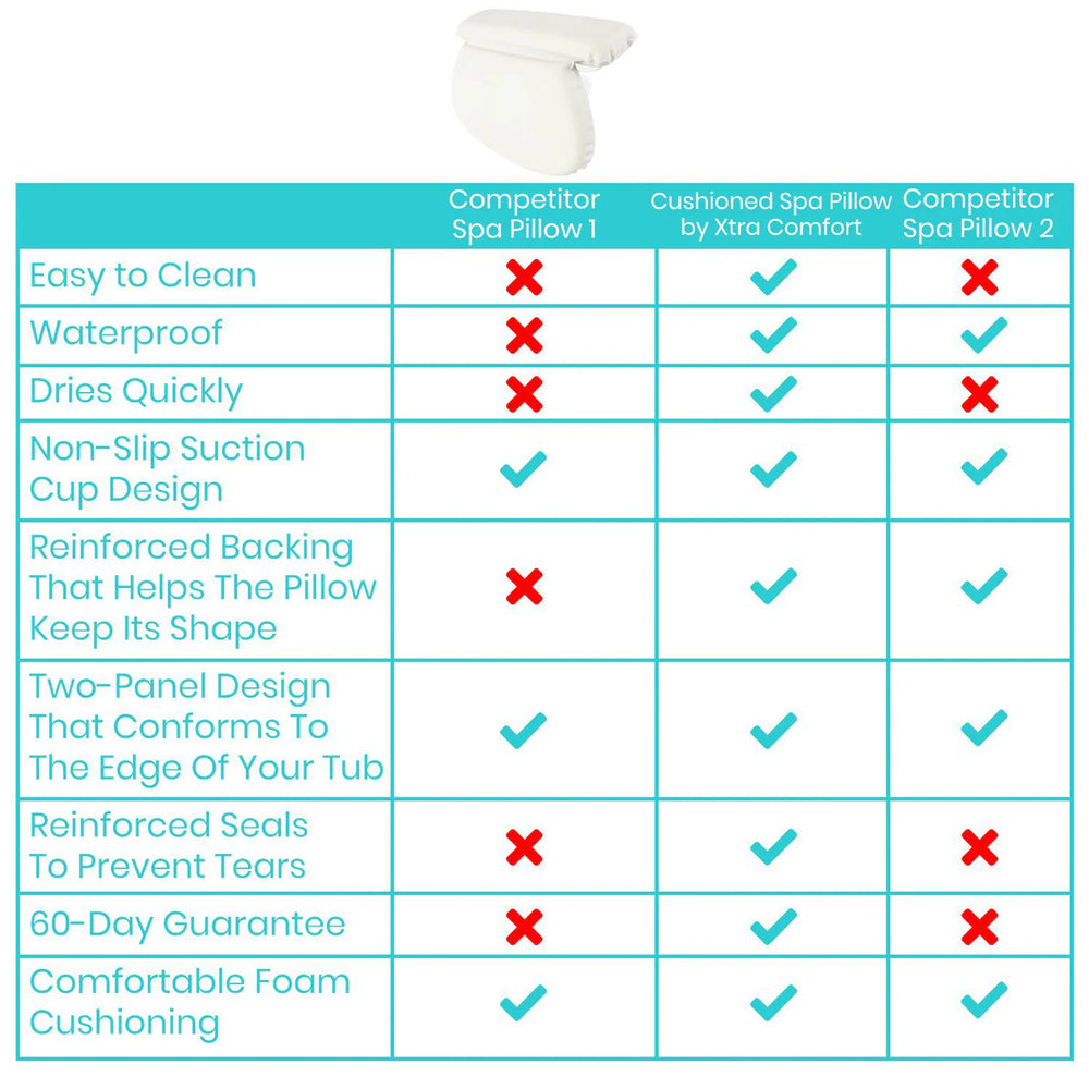 The spa pillow is made with a 2” thick, high-density foam for optimal comfort and support