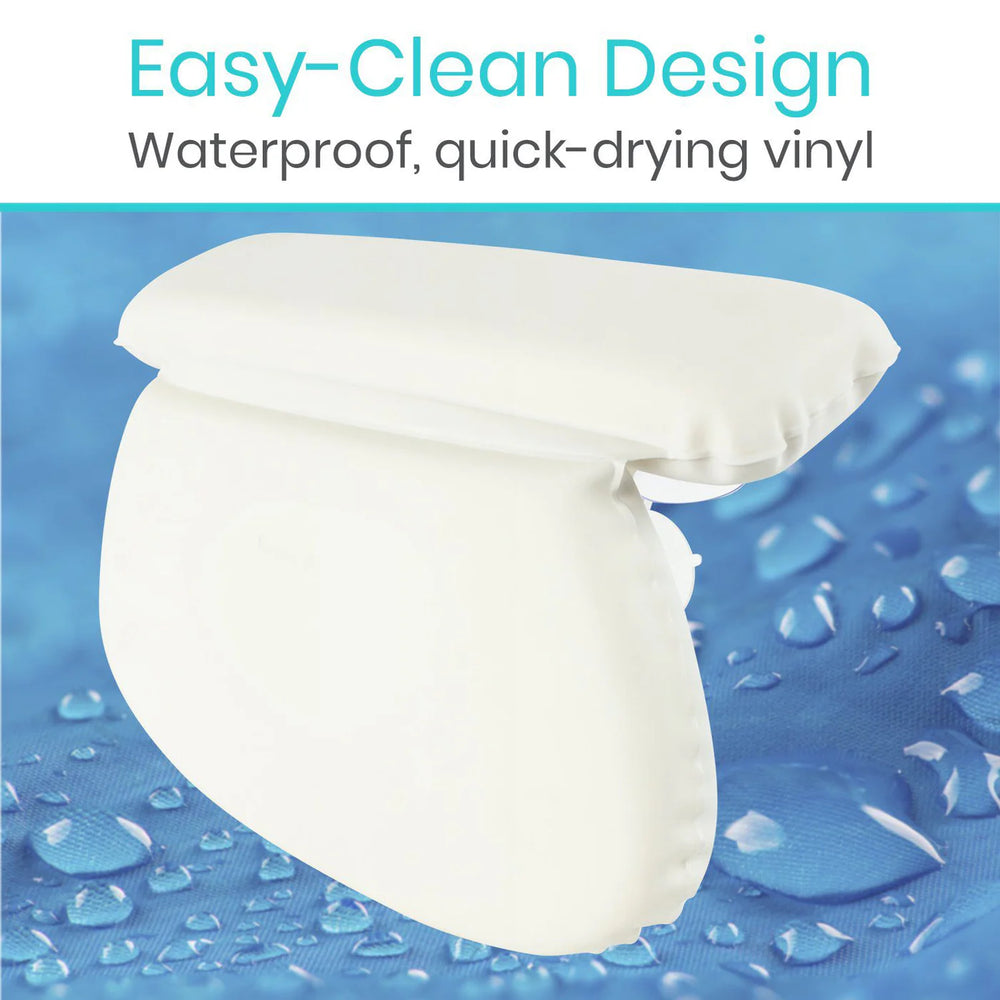 Securing to any non-textured surface, the bath pillow base includes seven strong suctions that are reinforced for greater durability