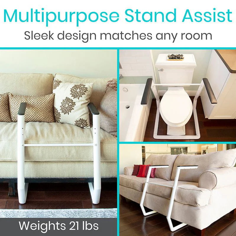 Providing a strong, stable base, the stand-alone rail allows you to easily rise from a toilet, a sofa or your favorite chair