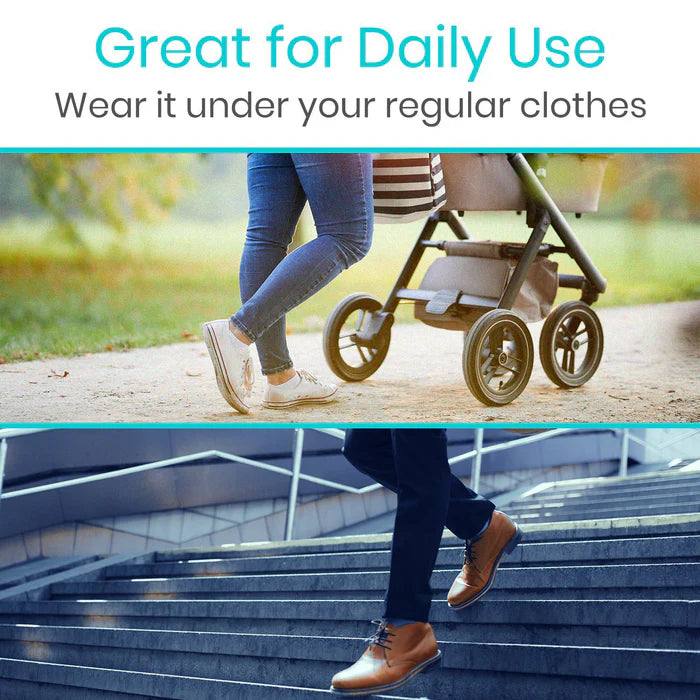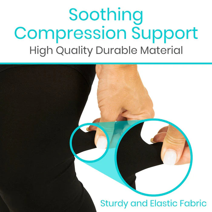 Alleviate uncomfortable swelling and fatigue in the feet, ankles and calves due to inactivity, travel or pregnancy with vive thigh-high compression stockings