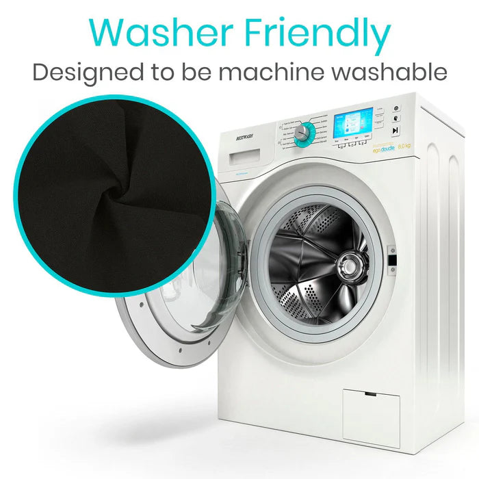 The soft compression stockings may be hand washed in warm water with a mild soap or detergent. Lay flat to dry.