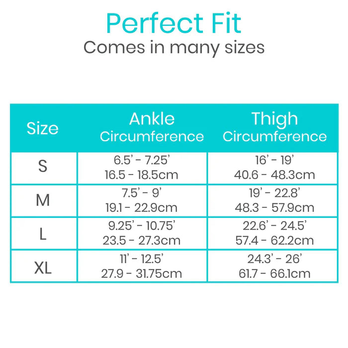 Using a fabric tape measure, measure the circumference of your ankle and calf. Choose the size from the sizing chart that best coordinates with your measurements.
