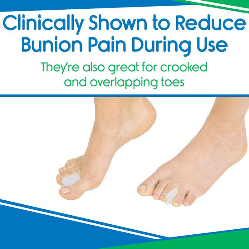 The toe spacers can be used to separate the toes for a variety of foot issues, not just overlapping or crowding toes.