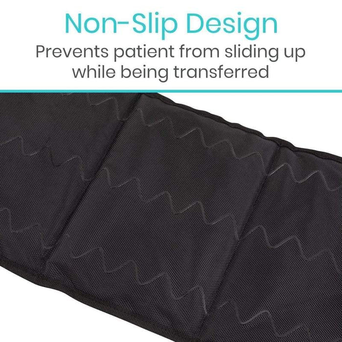 The transfer sling is lined with a nonslip material to prevent riding up, sliding or bunching