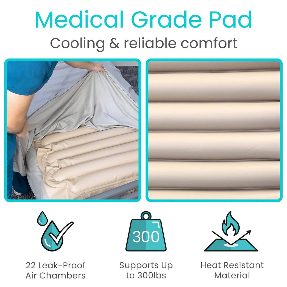 Combining features like an ultra-quiet pump, ergonomic cell design, and adjustable airflow, this pressure pad maximizes comfort and ensures therapeutic support. This alternating pressure pad is ideal for those who are looking for enhanced rest and recuperation