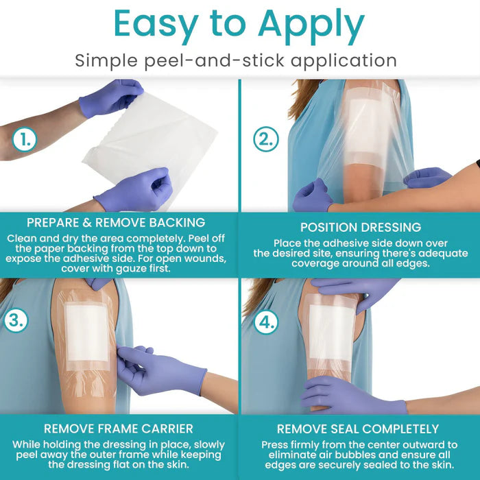 These waterproof patches are ideal for protecting wounds, surgical sites, catheters, colostomy sites, tattoo aftercare, and dressings during showers. They help keep healing areas dry and hygienic.