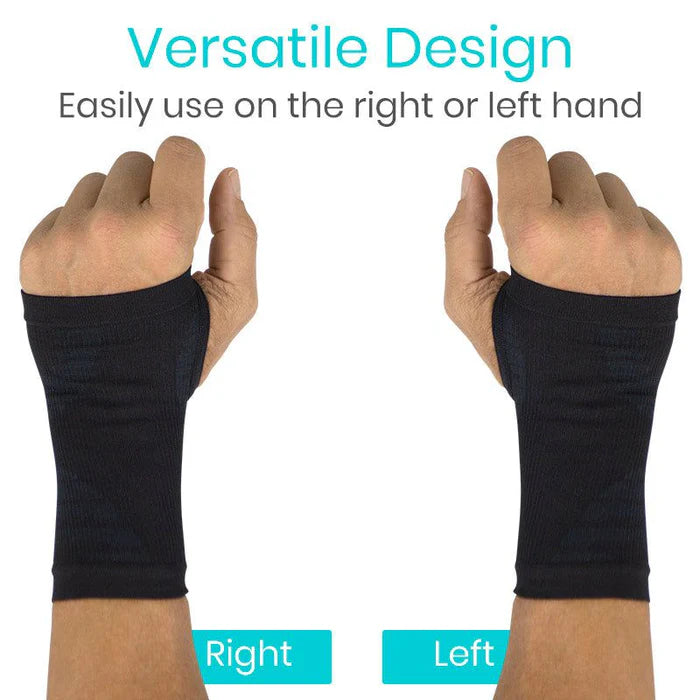 Providing firm graduated compression, the Vive Wrist Compression Sleeves relieve pain, inflammation and fatigue due to arthritis, carpal tunnel, tendonitis, sprains, strains and more