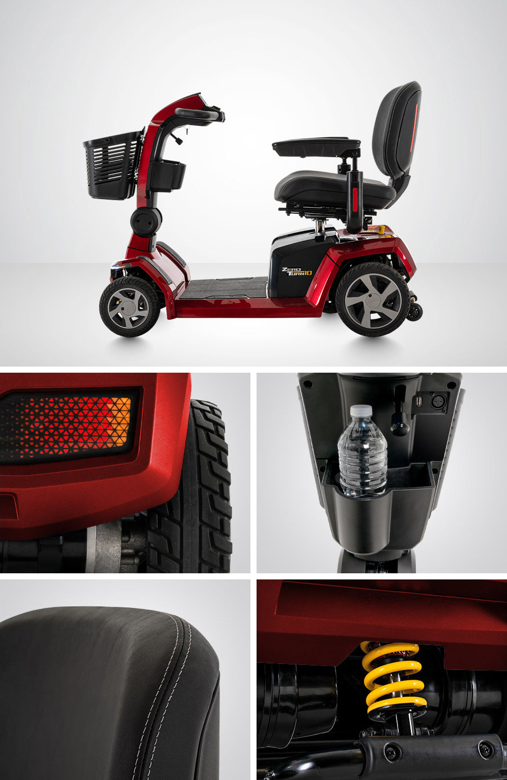 Futuristic design and enhanced capabilities in the Zero Turn 10 mobility scooter start your imagination turning every time you grab the tiller handle.