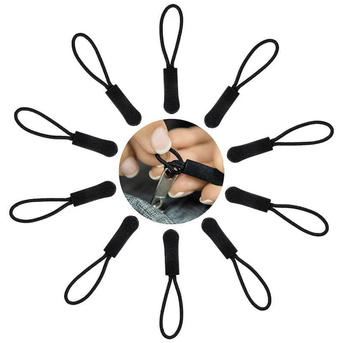 The zipper pulls loop through the existing zipper or slider for easy installation